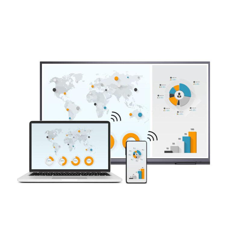 - Built-in interactive whiteboard system allows annotating and sharing by QR code.